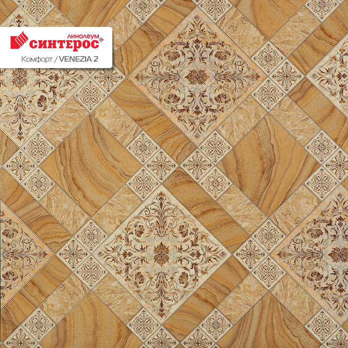 Линолеум Синтерос Комфорт Венеция 2 выпускается на заводе Tarkett под брендом Sinteros, имеет двойную основу, делает этот продукт устойчивым к влажности, перепадам температур и разрывам, отлично подходит для укладки в бытовых помещениях. Это достаточно толстый линолеум с защитным слоем 0.2 мм. Так же линолеум имеет дополнительный защитный лак "Titan".